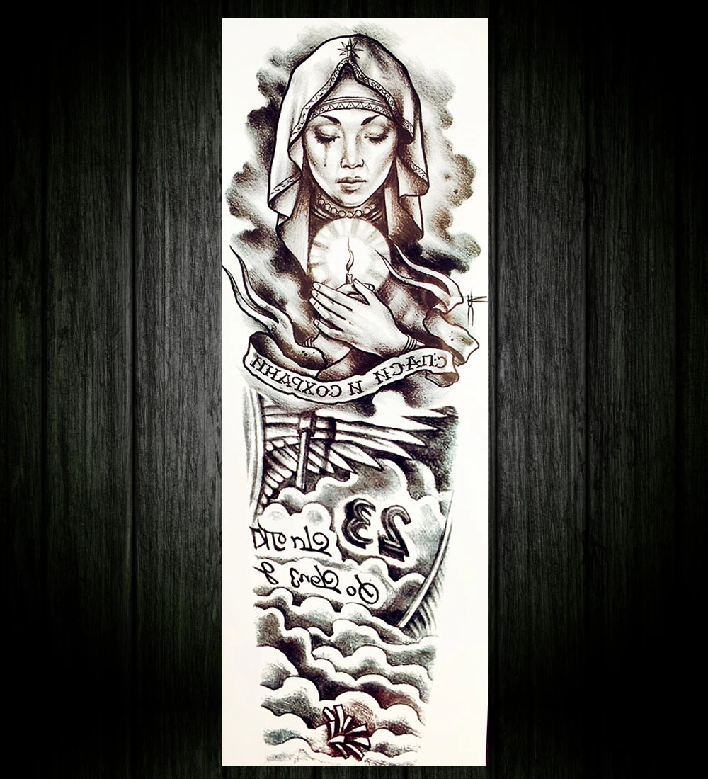 Nun Praying Full Arm Temporary Tattoo Sleeve For Men Women Fake Priest Tatttoo Sticker Black Large Angle Peony Death Skull Tatoo Temporary Tattoos Aliexpress